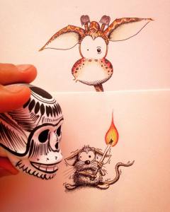 Pero además de eso, es un prolífico artista autodidacta. Le encanta usar el boli negro para crear divertidos personajes que parecen escapar del papel.